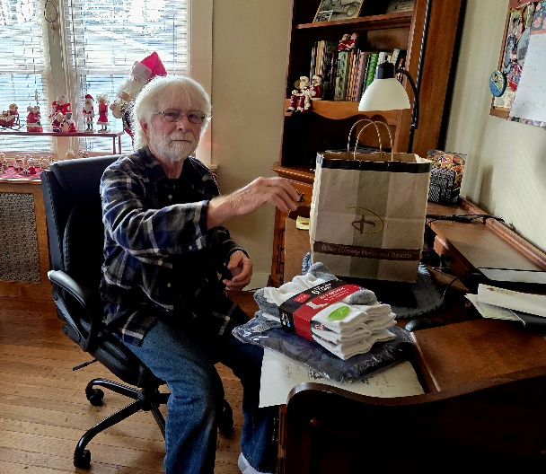 Today is another Holy Day here at the Acres: Casey’s birthday #71. He just will not catch up with me, though I try to dawdle… He was tickled to receive his annual infusion of flannel shirts and socks…