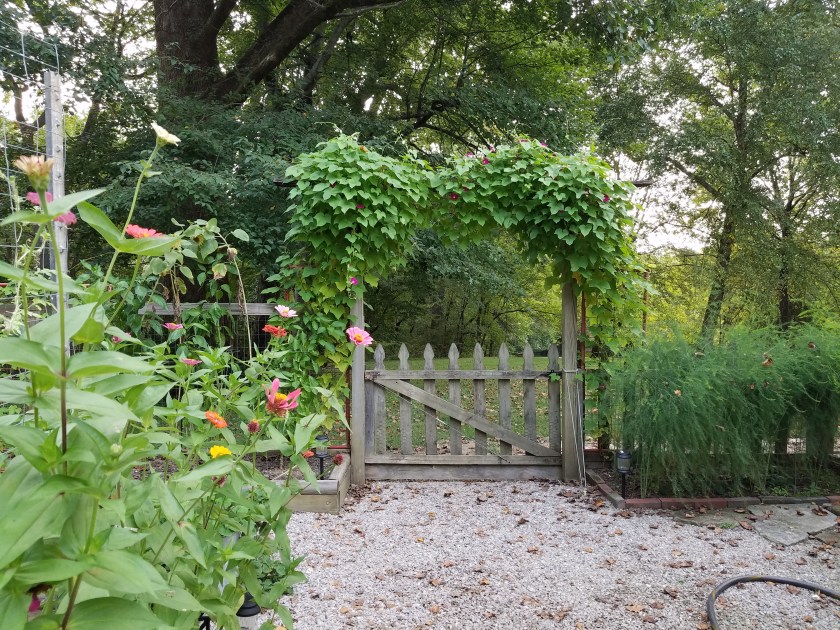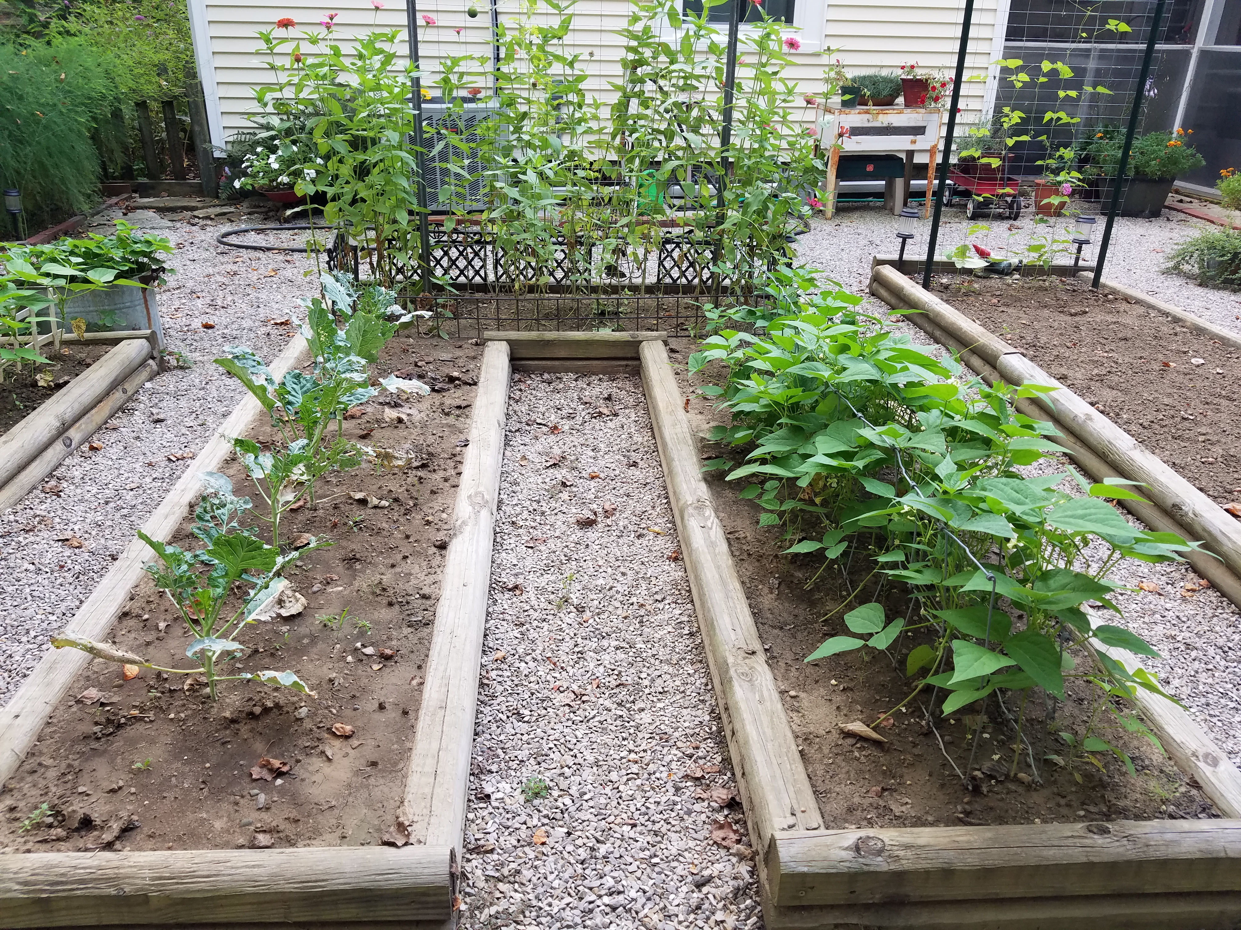 We’re in a bit of a holding pattern here at the gardens, just waiting for the plants to Finish Up. There are almost a dozen peppers still maturing and it’s about time! The tomatoes look spent, but there are a good ten fruits left to ripen. The green beans have flowered, should be ready to pick in a week or so. I think we Saved the broccoli – no more worms — but they need to do a little catch-up growing. We cut down the cucumbers who had served us so well this summer.