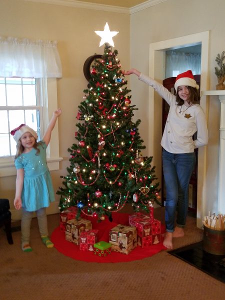 The Jr girls are our usual tree-decorating Elves, but since I don’t get to see (in person) the New Yorkers this year, I’m trying to pull us all together via instagram. I didn’t do so well at getting the screenshot of the New Tradition, but I’ll get better. I had bought four new Mickey ornaments from WDW and Emma and Eliza directed Olivia and Samantha as to placement of the ones they chose. Eliza also entertained us, playing Christmas music on her keyboard while the Jrs. finished.