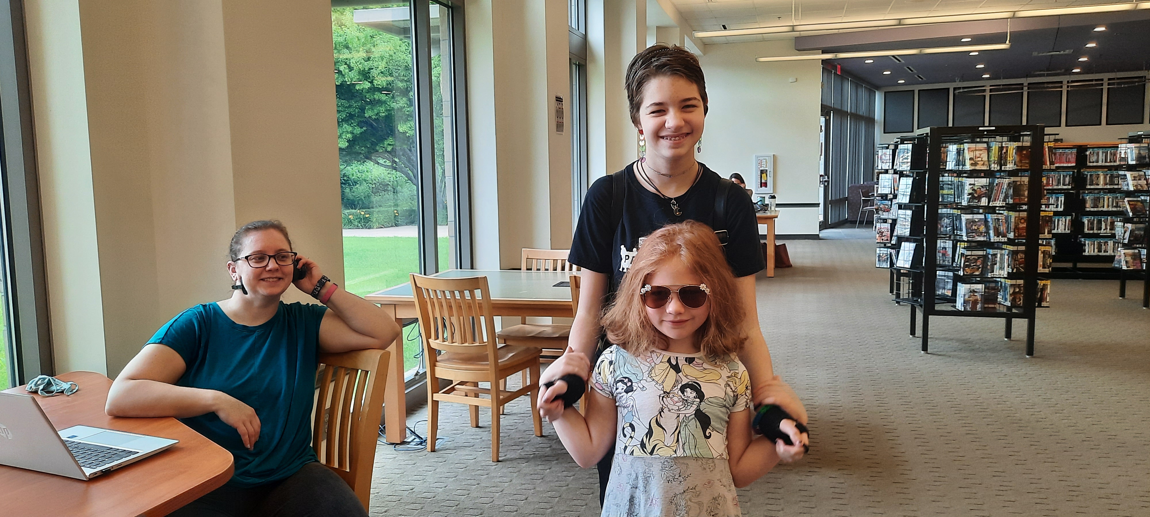 We’re going to have Weekly Sleep-overs this June, every Tuesday-Wednesday, but our High-Schooler will decide on a week-to-week basis whether she spends the night. Yesterday it was only Samantha, a very tired Samantha at that. We watched some Disney–I love Encanto, so it’s okay to watch it again and again. We did some art and made our own pizzas and she fell out early. This morning we met up with her Mom and Sister at the Oaklyn Library where they’re kicking off their Summer Reading Program.