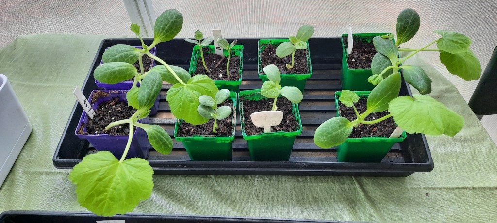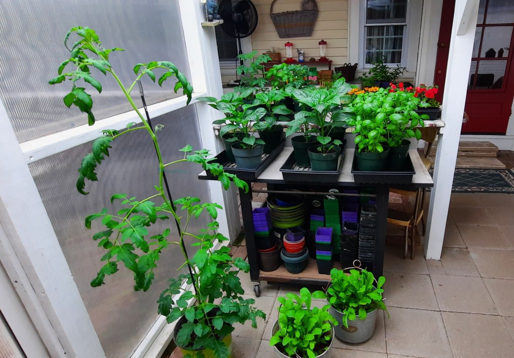 I can’t wait to get digging and planting. My vegetable plants are begging to go in the ground and be a Real Garden. I have to admit that I enjoy having such Green on the back porch and confess that I’m still not sure Exactly where to plant everything. I’m super-proud that my indoor seed-starting has yielded 8 watermelon (sugar babies), 8 canteloup, 3 zucchini, and 3 yellow squash, but they are teenagers now and need to be Outside.
