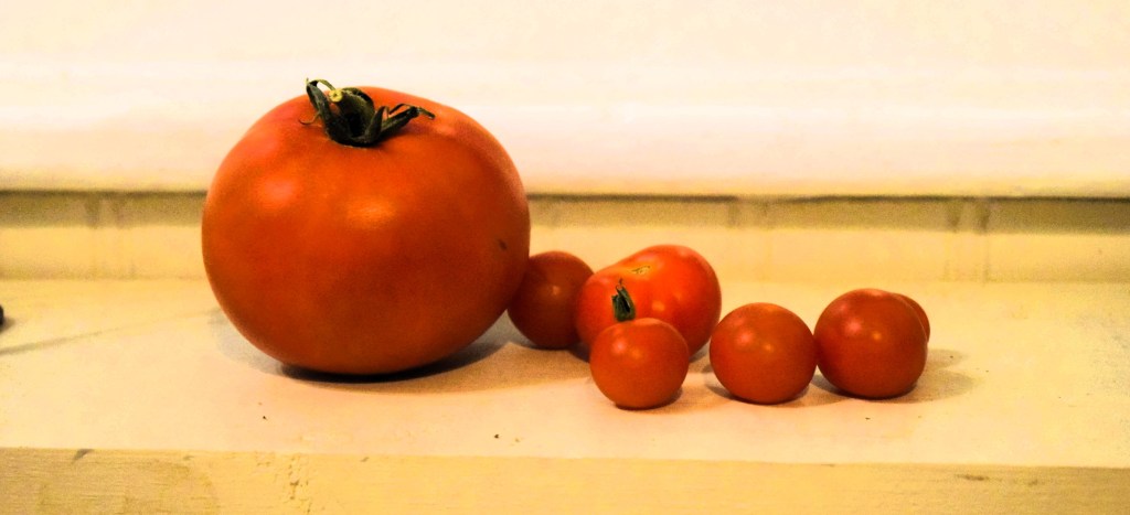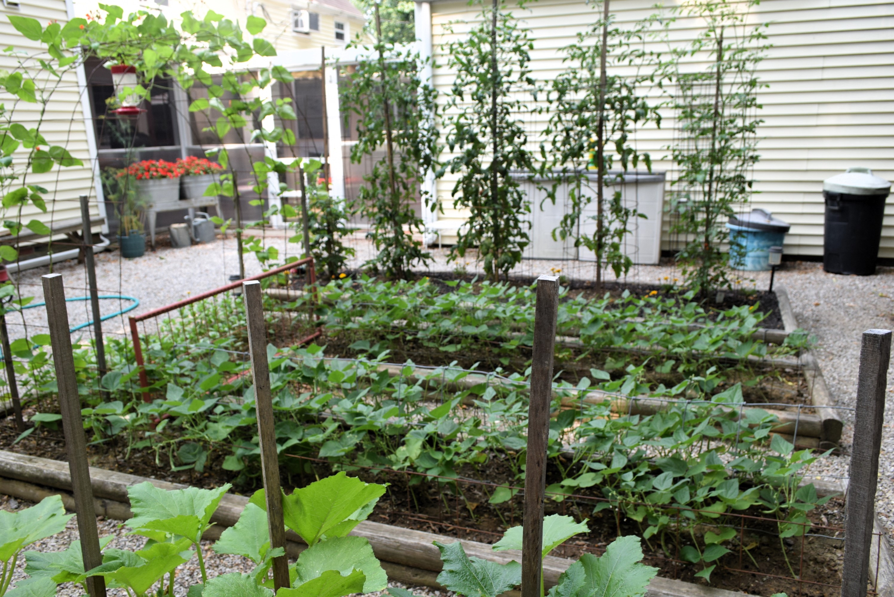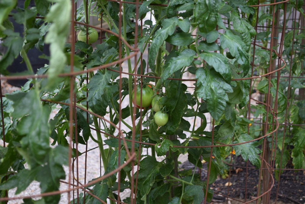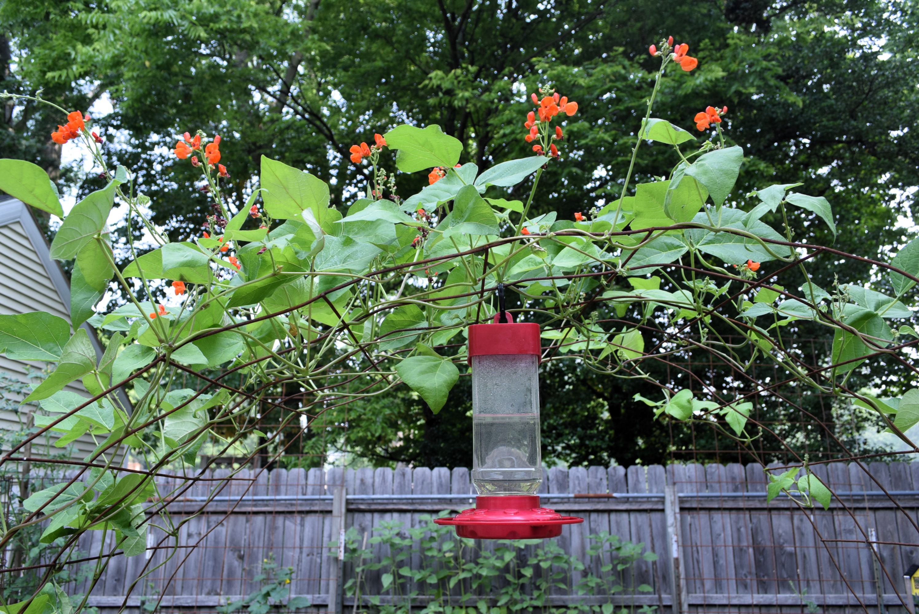 We harvested the first tomatoes on Wednesday and the yellow squash and zucchini have put out a half-dozen or so fruits. We pulled one cucumber off today and it looks kind of puny. The hummingbirds and bees are loving the scarlet runner bean blooms. I’ll need to start harvesting the green beans once it dries out a bit, and there are a dozen sweet bell peppers growing strong.