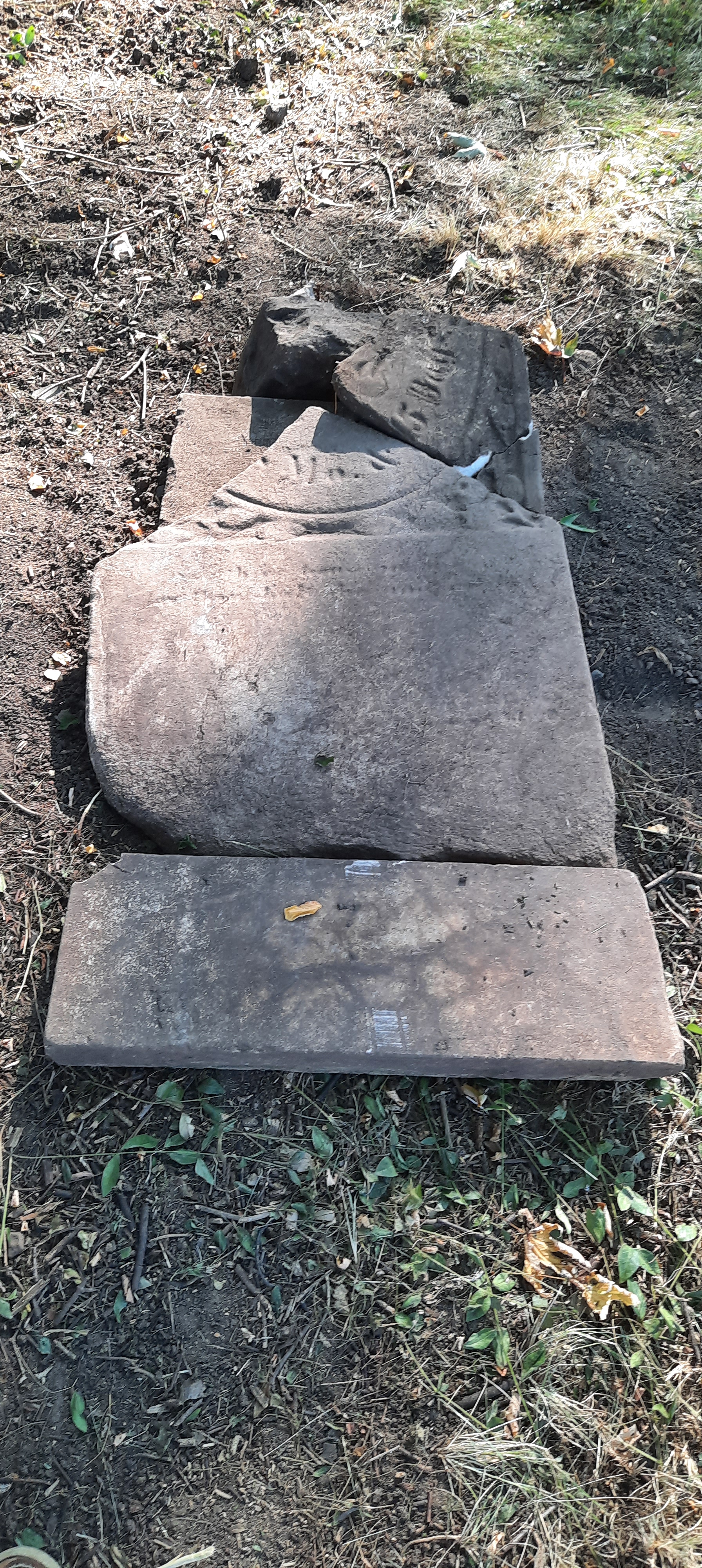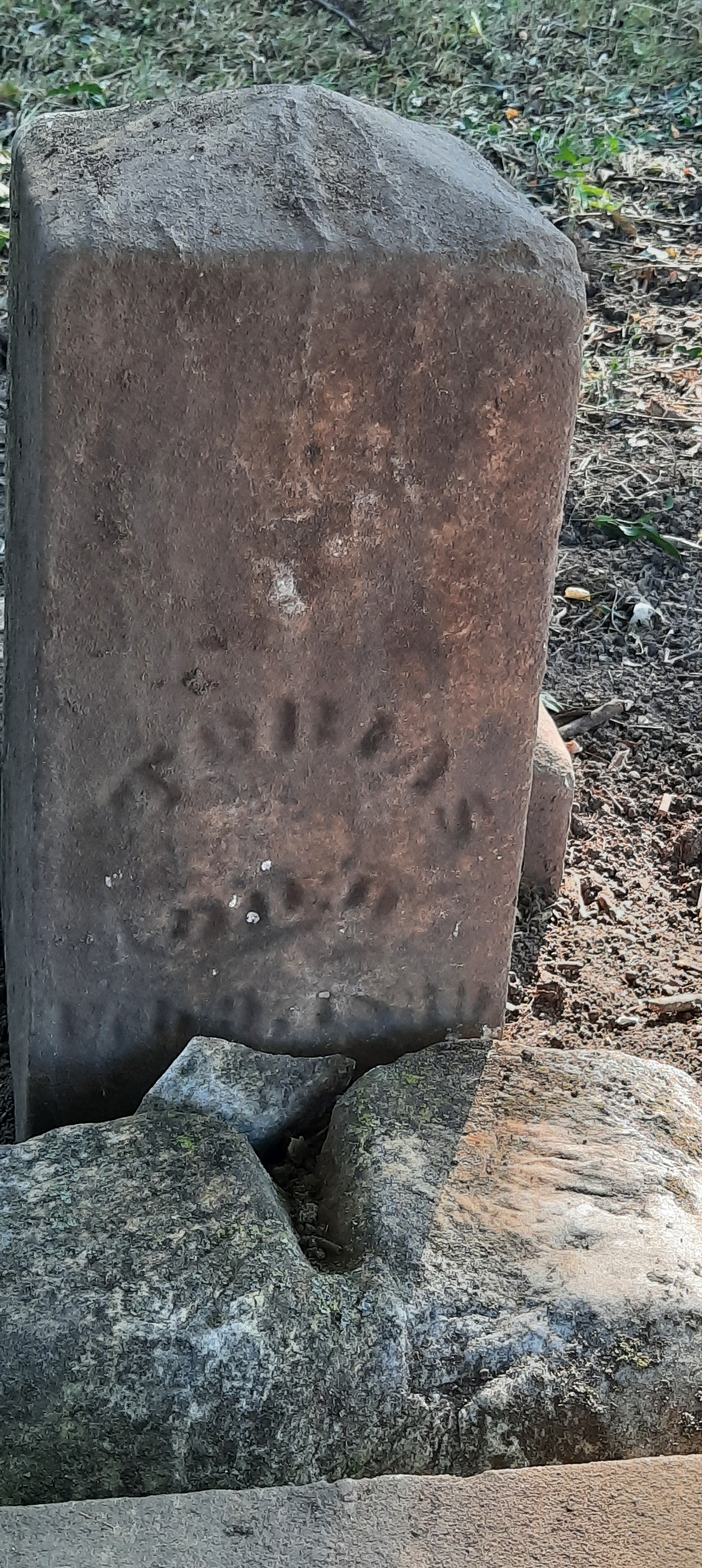 One of the broken stones looked to be the bottom third, showing an illegible epitaph, of a larger grave that we assumed had been Adam’s. We also found a hand-size broken “rock” with an A and part of an M engraved on it, so I figure it’s probably going to be like a jig-saw puzzle.