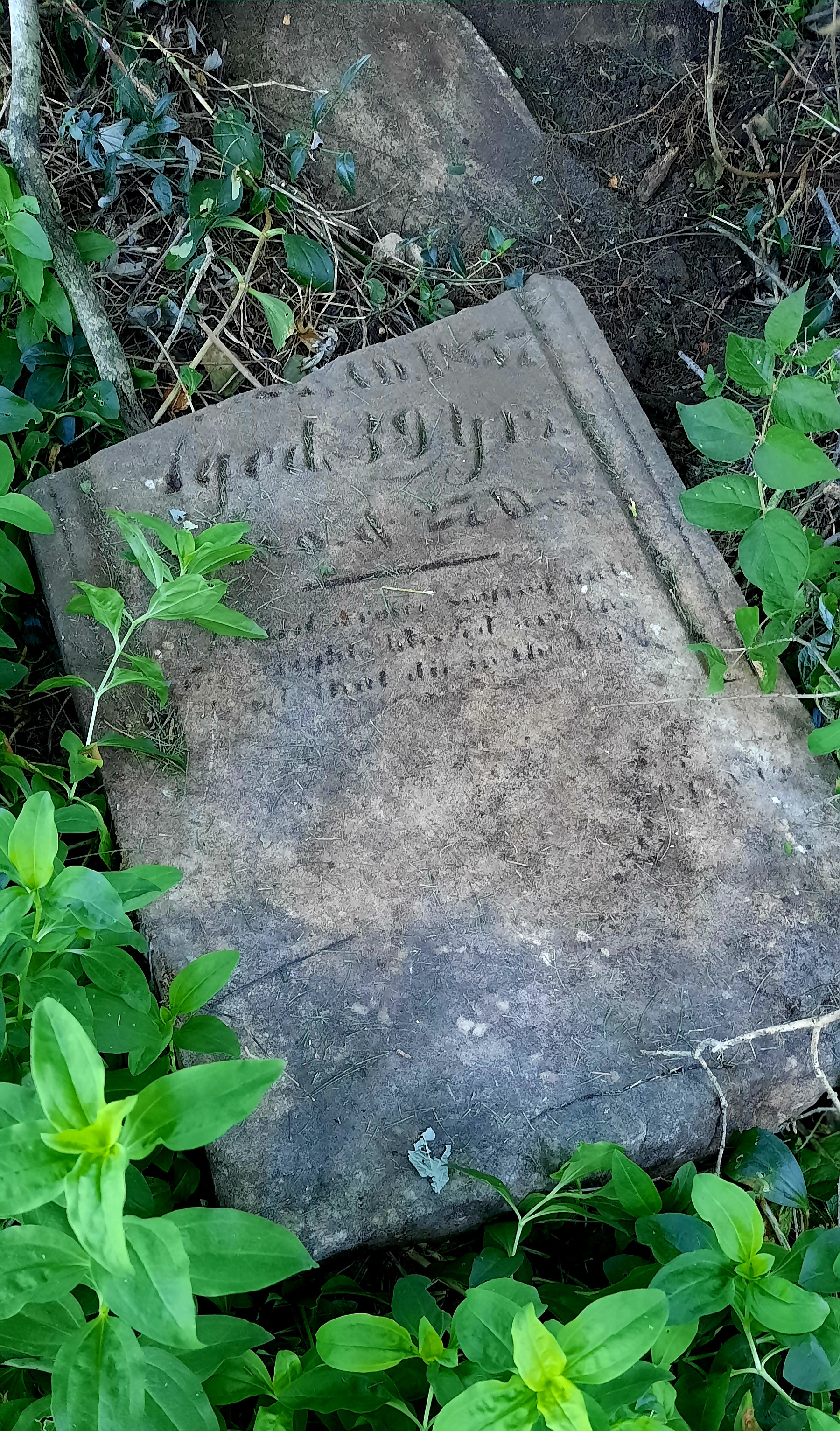 I’m so proud of what we accomplished! I already knew that the gravestone of Sarah Ellis Mayne, my 3x great-grandmother, wife of B.F., was broken, but its engraving was still clear. I knew that other stones had been thrown in a heap under the shrub that was allowed to grow right through Sarah’s grave. We had not located Adam’s grave at all, though 4x great-grandmother, Catherine, and B.F.’s 2nd wife, Elizabeth, were both intact, sort of. All of these stones had originally been upright.