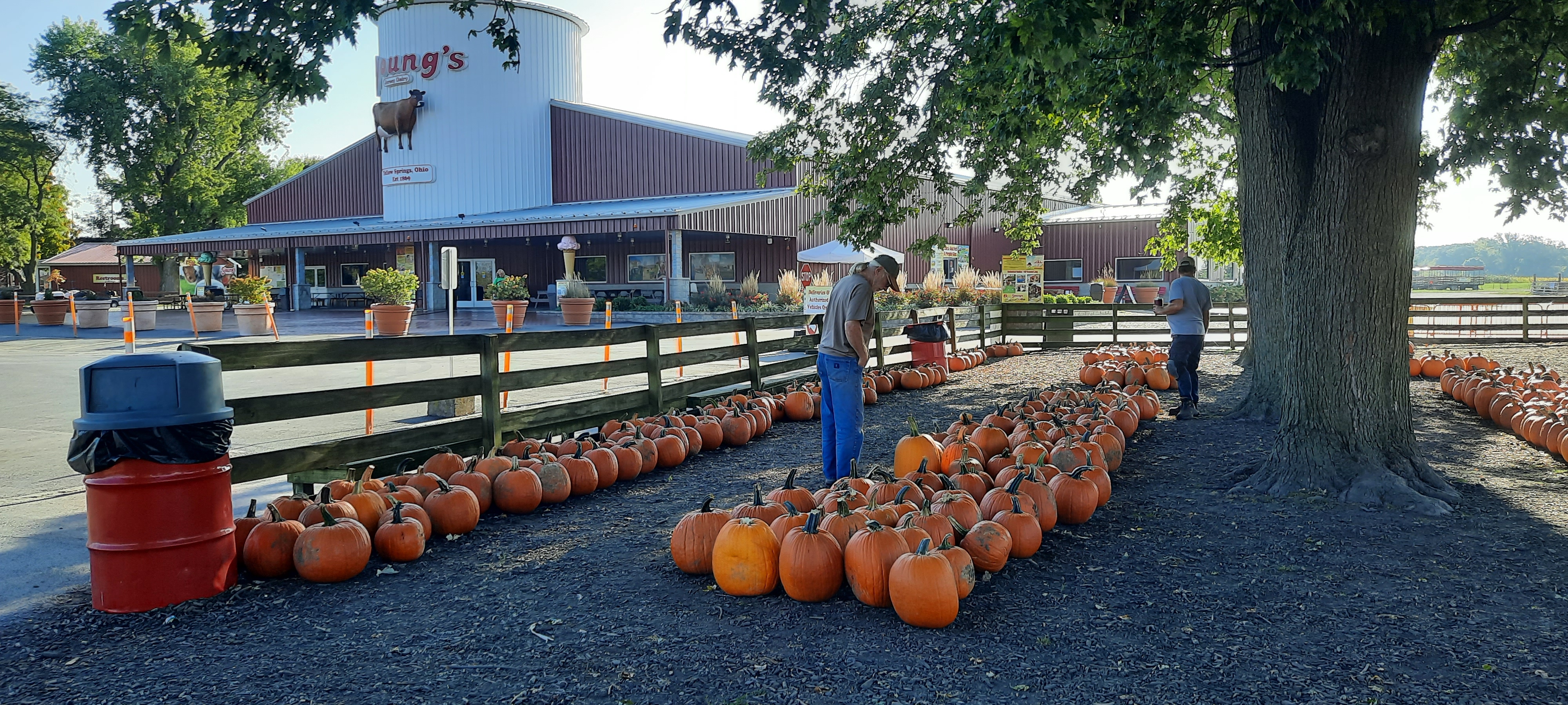When we were up in Yellow Springs, Ohio, we visited a place called Young’s Dairy, renowned for its ice cream and full of the usual pumpkin and apple butters and pies. They have a corn maze and give regular hayrides in the Fall, so the parking lots were overflowing on the week-end, but we stopped in on an early morning Tuesday for some pictures.