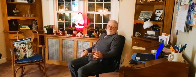 All this time, Wink has been giving us a lot of consternation. His eating slowed, he slept more, seemed out-of-it, but no real complaint or pain. By Thanksgiving, he couldn’t make it upstairs to his catbox anymore, so we moved it to our bedroom, but now he’s not pooped in ages and barely pees. He can no longer jump. He’s stopped eating, though we try to feed him anything we can think of. He does drink water. He can’t move his legs too well, but he insists on going out on the back porch every morning, even went out on the front porch the other evening. We look for any sign that he might get better, but at the ripe old age of 19 1/2 years, it’s doubtful. Because we’re leaving for NYC on the 14th, we feel like we have to make a decision on his future. We’re just so sad.