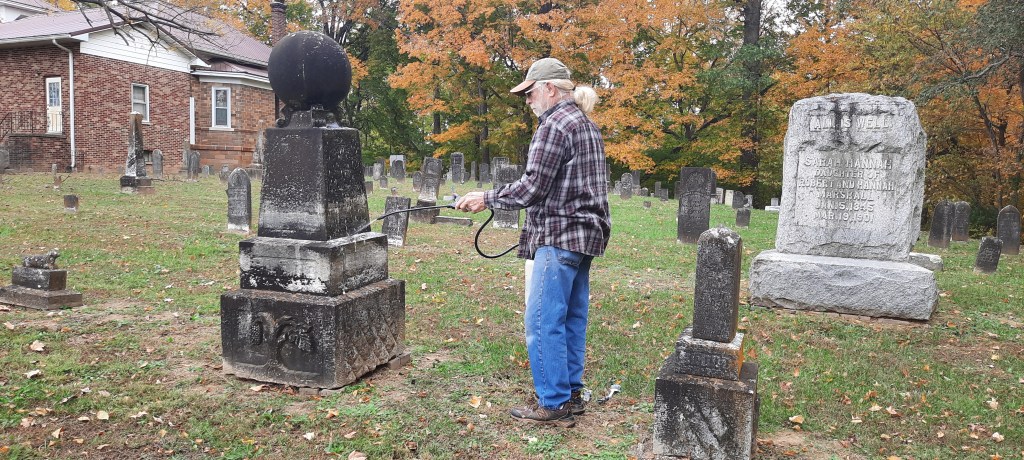 We started November out by celebrating the Days of the Dead aka All Saints/Souls Days at the Marion Church Cemetery. I’d been up there with my brother a couple of weeks earlier and had noticed that many of my ancestors’ graves were quite black. We did some research on gravestone cleaning and spent a few hours there using Wet ‘n Forget. I made some videos telling the stories of the people buried under the graves we were cleaning, namely my great-uncles Chester and Herbert, and great-aunt Nellie. The next day — seriously, the very next day — I discovered I had Aunt Nellie’s story All Wrong, so I’ll have to make a new video when we return. The WetnForget is supposed to work over time, and we’re excited to go back up there this week.
