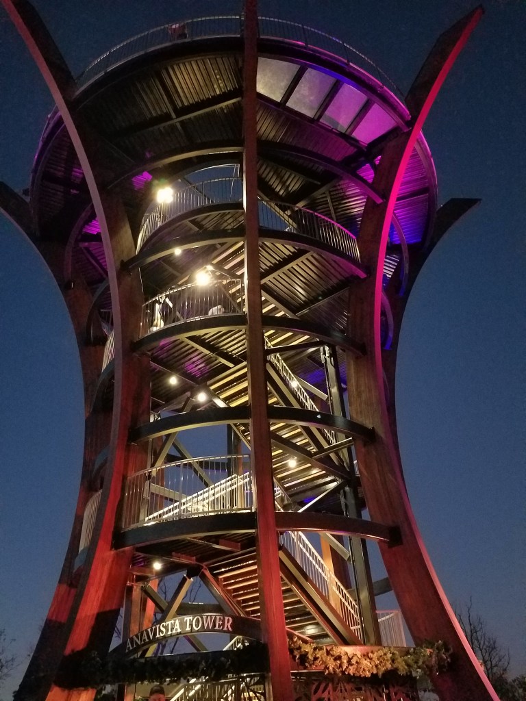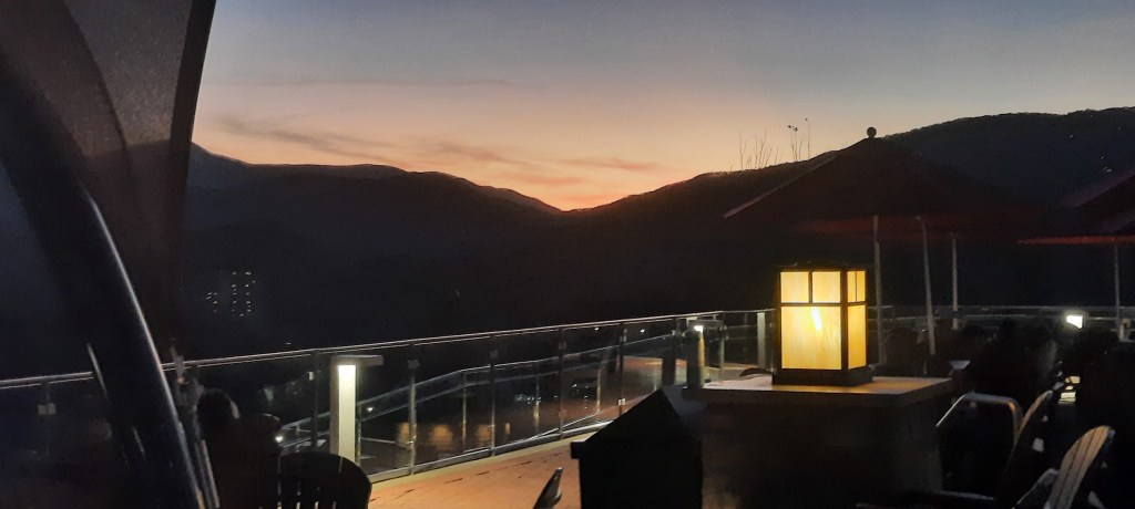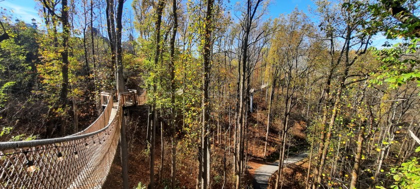 On Monday morning we drove to Gatlinburg. Our hotel was perfectly located for walking to our main attraction, Anakeesta, and just across the street from the parkway strip of tacky souvenir shops interspersed with moonshine tastings, wine and cider tastings, and restaurants. The Trump Superstore, loaded with fightfightfight shirts and hats, with its storefront a giant thumbs-up Trump, looms over the nearby jason aldean bar…