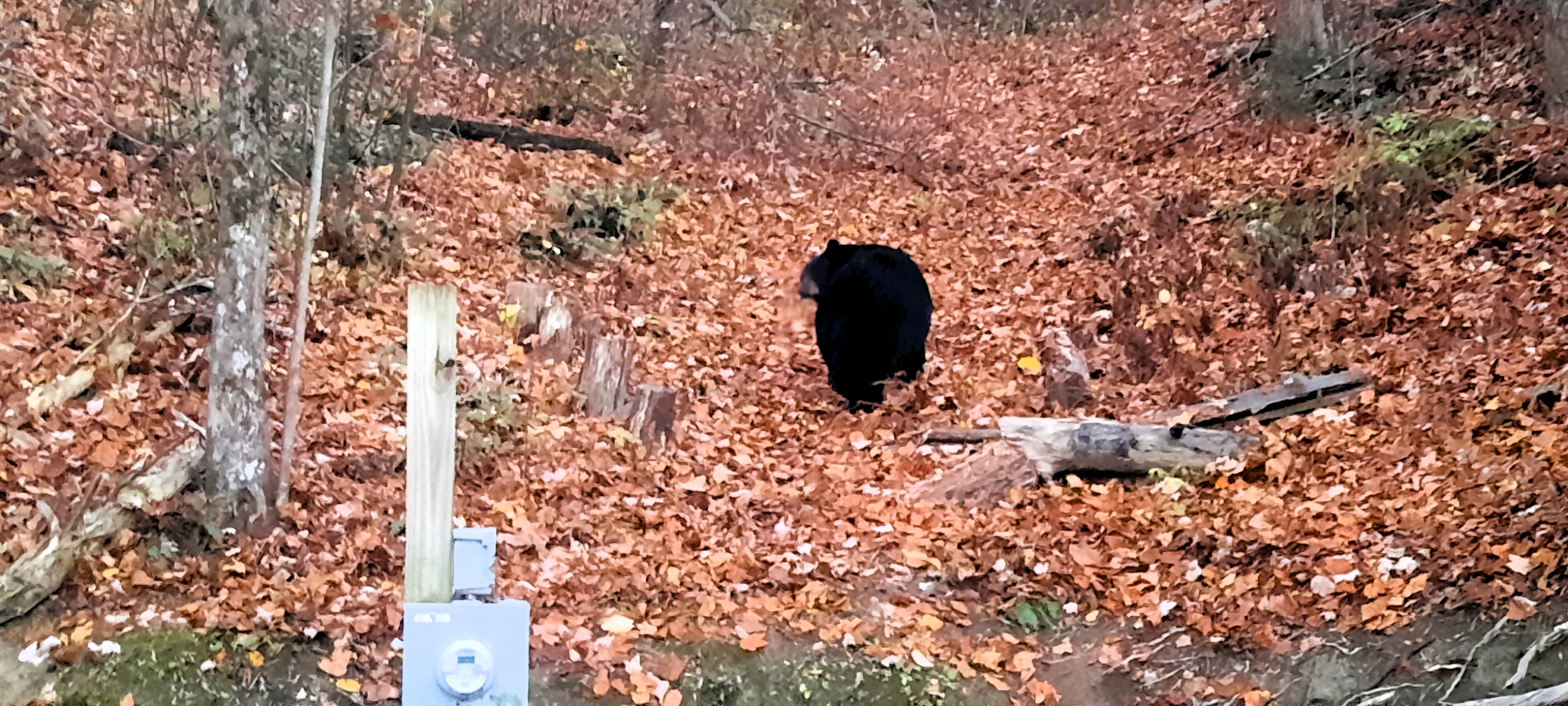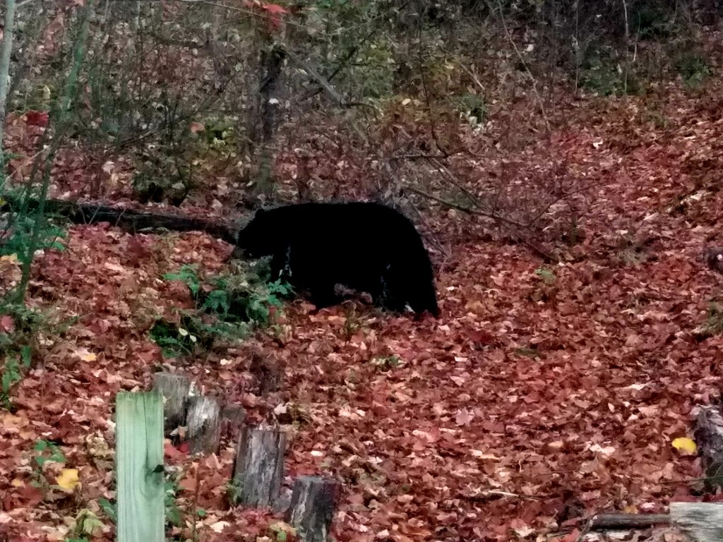 We came back down the mountain for lunch and then went back toward sunset and opted to travel up in their truck. About halfway up we stopped to watch a bear slouching alongside us.