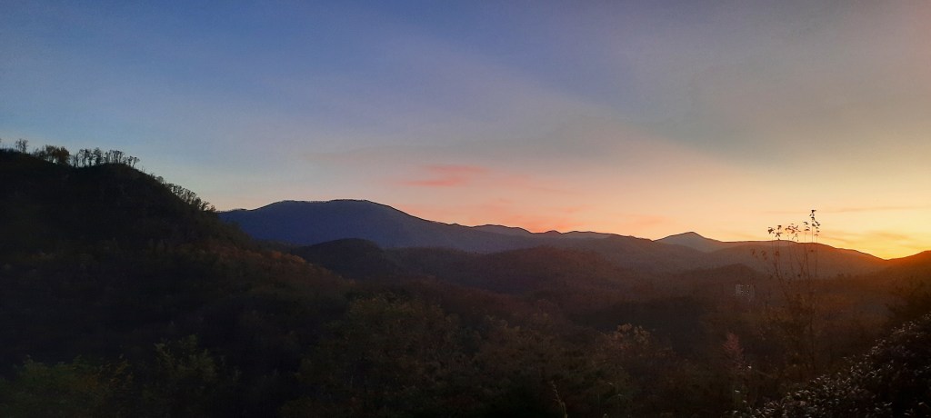 The next morning, we drove the familiar Little River Road through Smoky Mt. Natl Park toward Cades Cove and Townsend, the peaceful side of the Smokies. This is our usual destination, where we have stayed dozens of times over the last 35 years. The Air and Light are different over there, but I notice it’s growing, with several new galleries and restaurants. I want it to stay quiet! We resisted the urge to drive Cades Cove Loop and headed home.