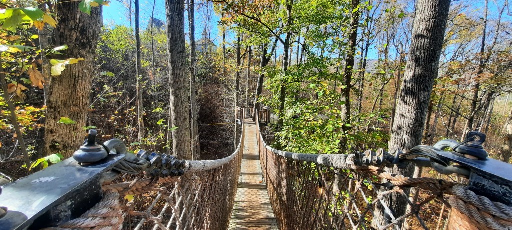 Good grief, a rope bridge in the trees? I’d be screaming help. You are a brave one.
