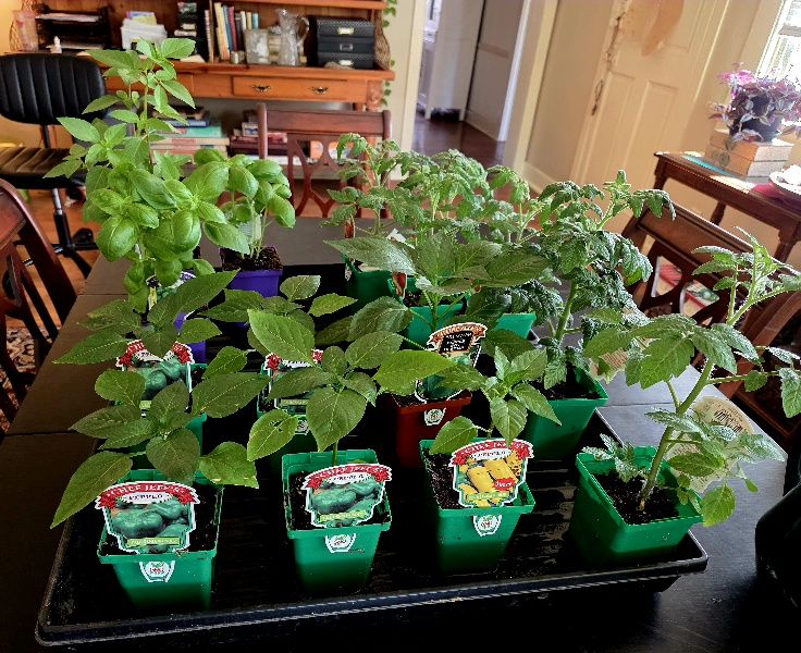 I think last night and tonight may be our last days of low temps in the upper 30s – fingers crossed – but I had to bring my tomatoes and peppers inside, where they’ll stay for a couple of days.