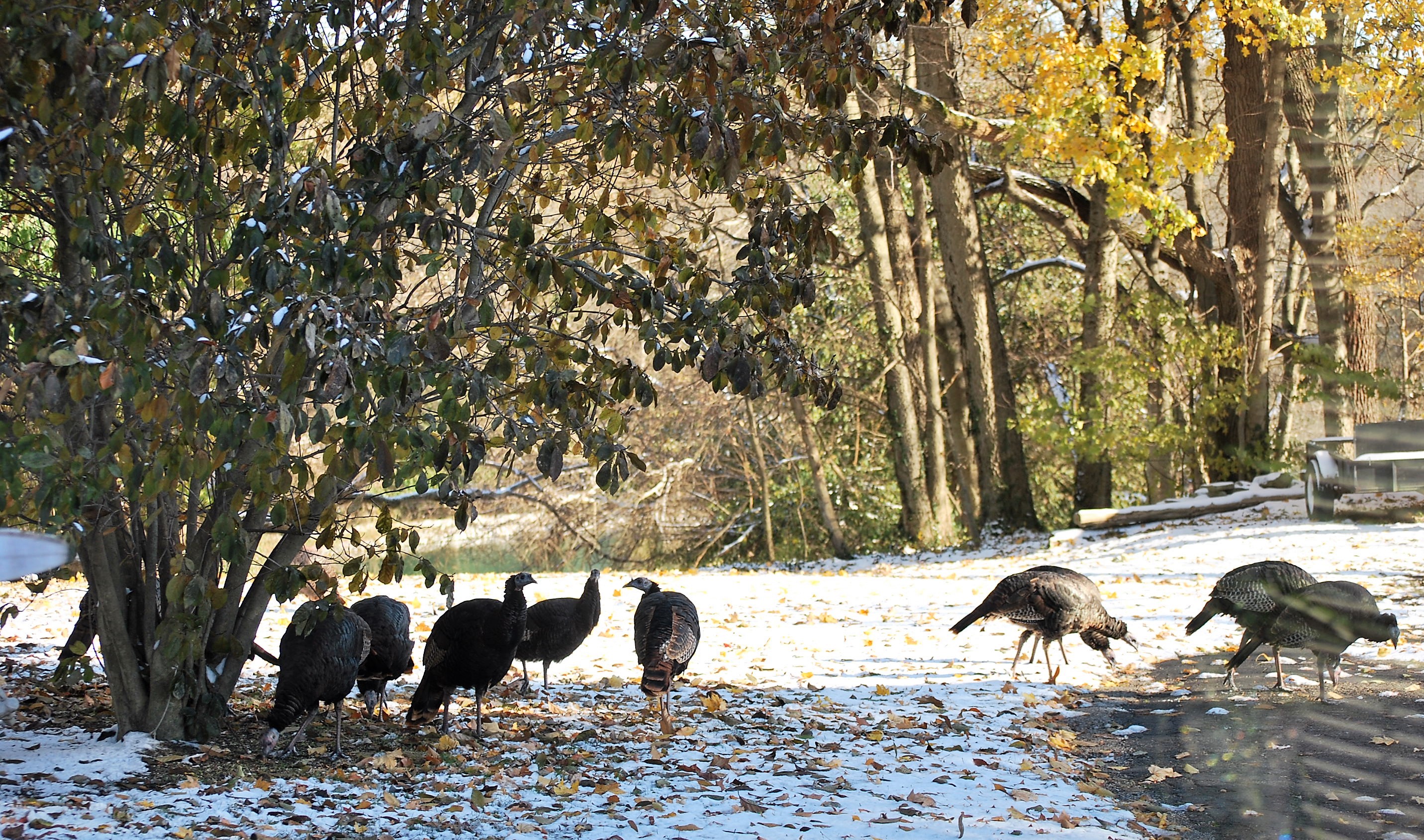 Wednesday morning the Turkey Hens visited to peck for bugs. We counted 22! They seriously need a safe and reliable source of birth control…
