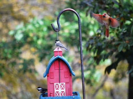 That Freedom is currently manifesting itself by being outside. Tugged along by the Autumn changes, I’m walking through crunchy leaves, feeling the pull of the season from hot and green to cool and orange, My usual cardinals have now been joined by migrating birds at the feeders and bath. I’m too busy Watching to take very many pictures, but I’m sure that will pick up since I got out the Nikon.