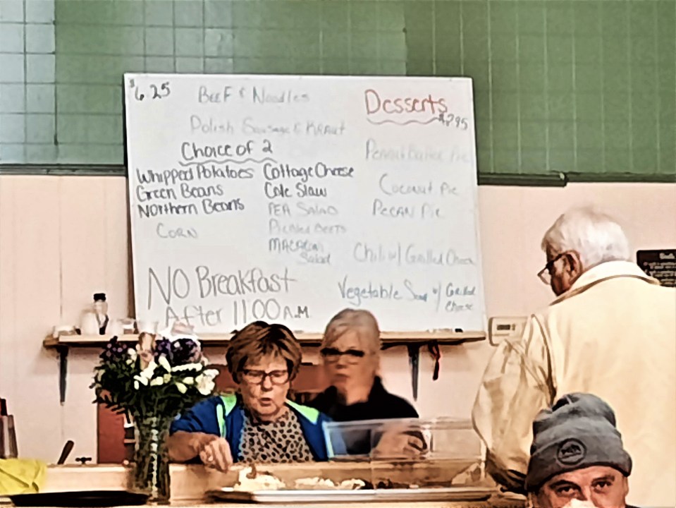 Sadly, the walls were already bare, the Rotary and Optimists Club banners having been moved to a new meeting place. The place is in dire need of repairs. The owner was not present and Kim said they were training a cook for the new owners who have promised to keep the menu the same, and she made sure he used enough butter, just like her Aunt had. Kim’s mom, now 73, was there to help wait tables.
