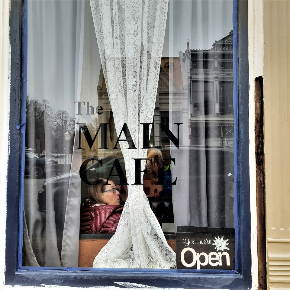 On Monday we drove over to New Harmony to say good-bye to a relic of my past, Main Cafe.