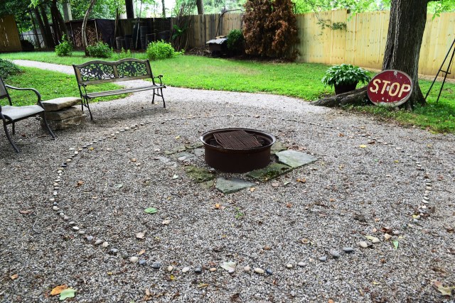 I made a river rock circle around the Shady Grove firepit!