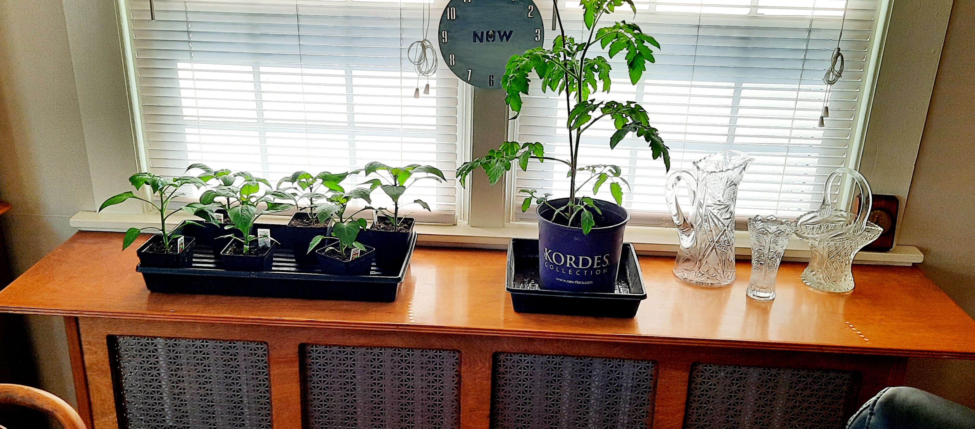 We are enjoying a couple of days of warm and sunny after mostly gloomy and wet earlier in the week. The windows are open with the birdsongs wafting in on the wind. Casey’s already outside tilling the Edible Garden and I’m on my out to repot the basil. All of our plants are growing strong and it looks like the weather is going to be perfect to get them planted when we return.