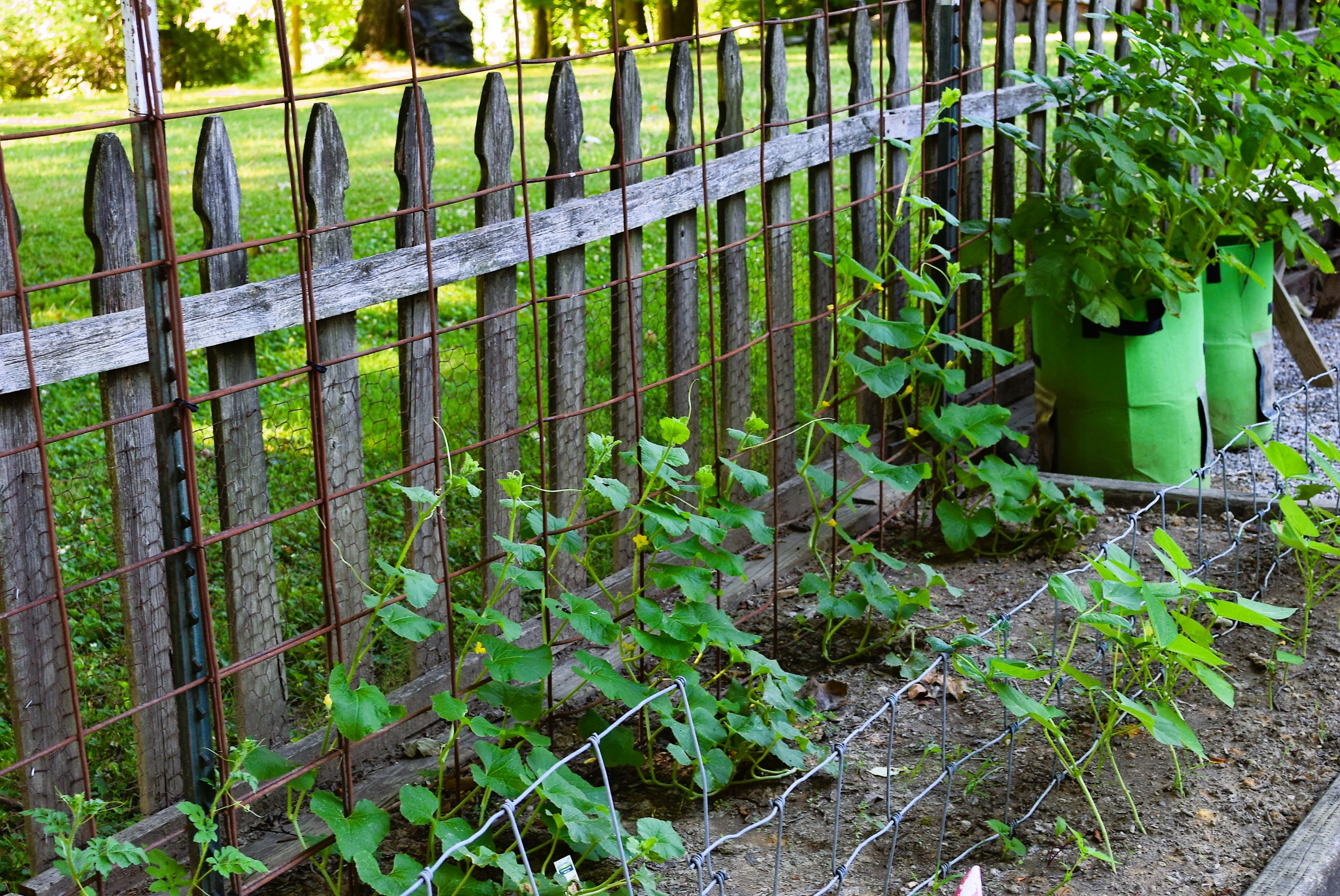 Let’s take a walk around the house, starting in the Edible Garden. Along our trellis, the cantaloupe, butternut squash, cucumber. and watermelons are all coming right along. None of the lima beans I put in sprouted, but I’ve got two more cucumber plants to fill the bare space soon.