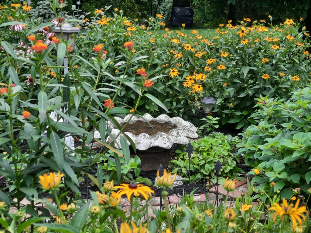It’s rained fiercely and we’ve done a lot of propping back up in the gardens, running outside between rains, especially in the Peace&Birds Garden.