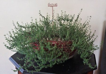 I brought in the Thyme and Basil the other day. I’ve never been good at growing herbs indoors, but this thyme is too pretty to harvest. The long stalks of the basil are going to be cut and used for pesto, but I’ll try to keep the smaller, younger plant growing.