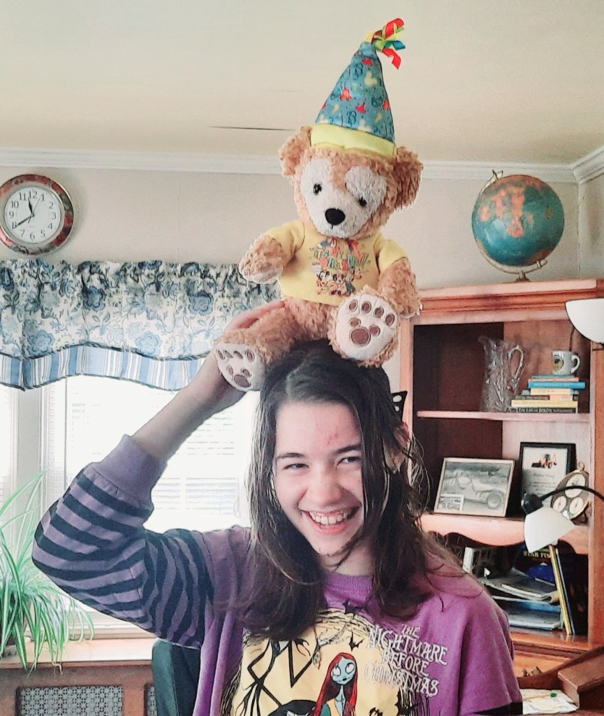 About seven or eight years ago, Nova, the artist formerly known as Olivia, was with us on a family vacation to Disney World. In the Germany Pavilion, she put up a request for a Duffy bear, and I quickly shot it down — it was a $50 teddy bear and I was being cheap. She wasn’t happy with me. All of these years, I’ve felt guilty about that and this year I determined to buy her a Duffy while we were at WDW. Duffy, by the way, is allegedly the teddy bear of Mickey Mouse. To my dismay, the only Duffy bears sold today are at Tokyo or Hong Kong Disney.