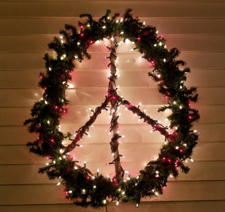 We’ve taken down the Christmas decorations except for the white icicle Lights hanging along the roof line of the front and side porches. I don’t know what Message leaving up the lights is supposed to send in our hyperactive culture, but for me it’s because I want to light up the night; besides, they look like winter and winter is where we are. Of course, the Peace sign wreath remains as well.
