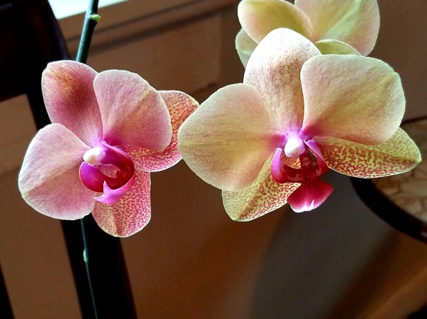 My orchid re-bloomed! I’ve bought many an orchid in the wintertime, hopeful that they would reward me with annual blooms. Usually I gave up after a couple of years and no sign of life… I didn’t do anything different this year; in fact, another is just sitting there stubbornly not-blooming even as we speak, so I feel quite humble in its presence…