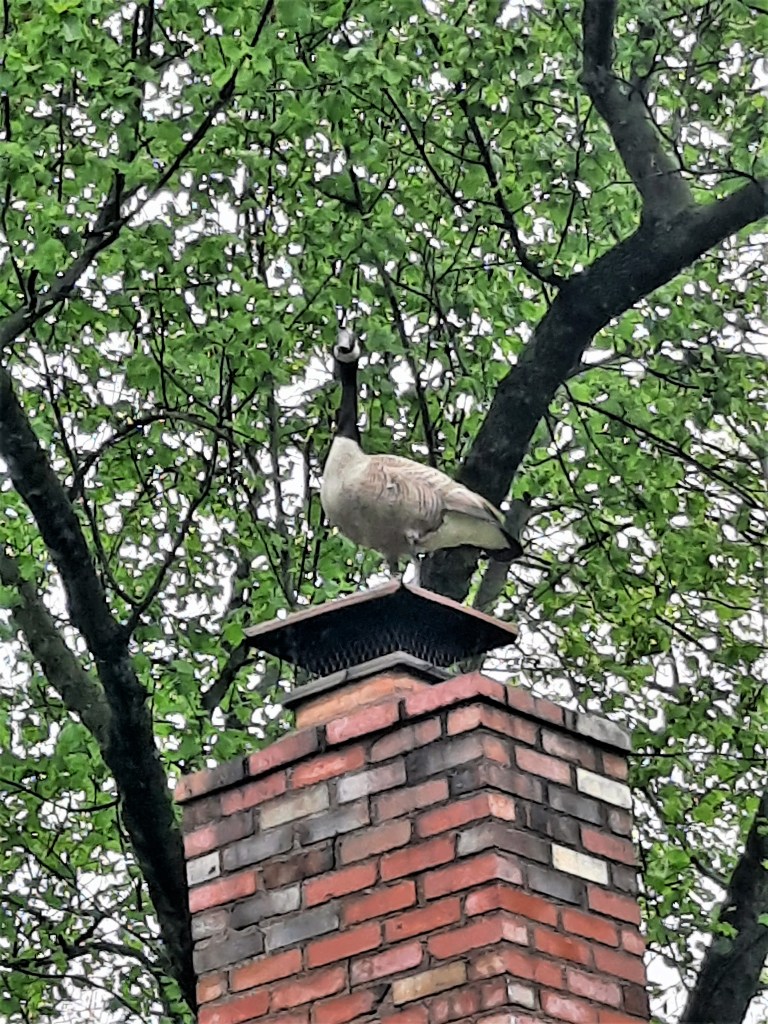 The birds have kept me company as I wait to get outside and really dig in. I heard a goose honking and carrying on and looked outside to see this…