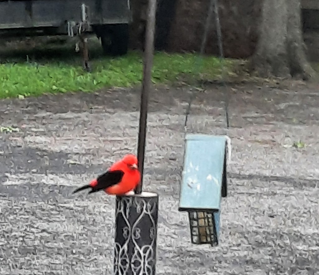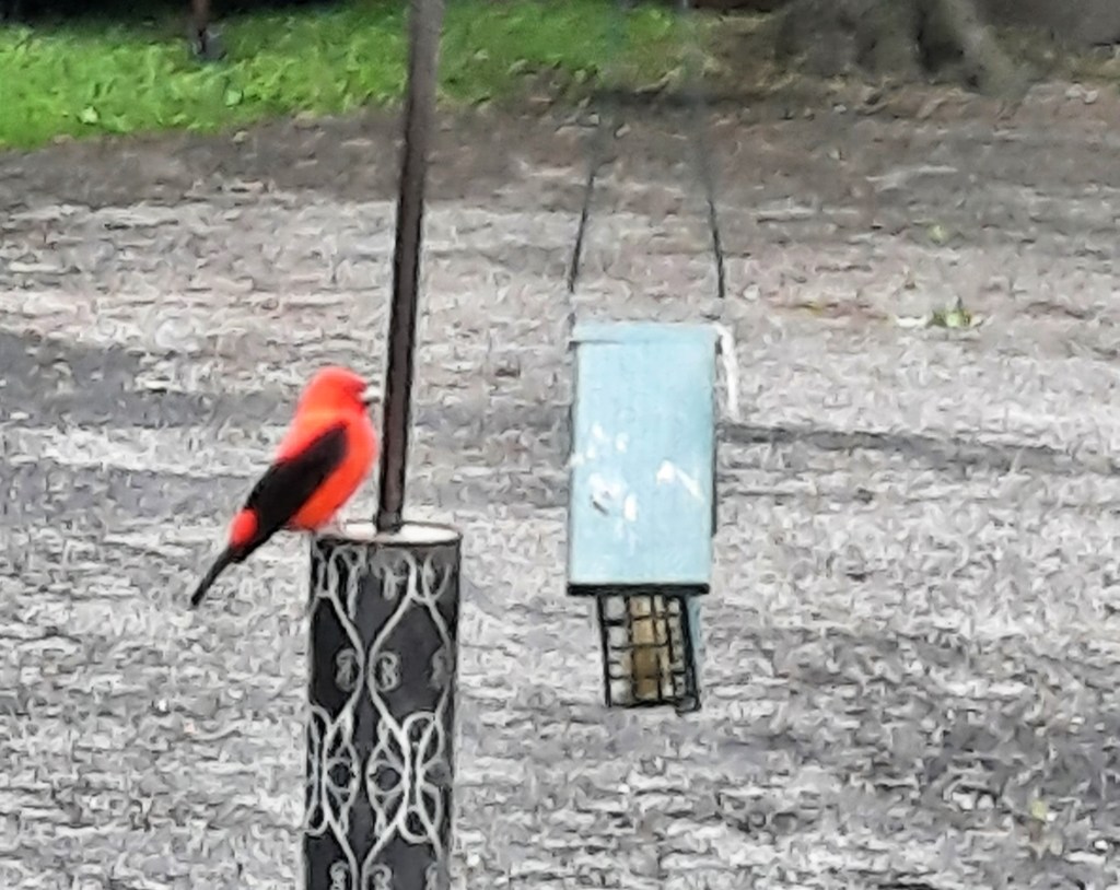 The feeder was visited by a Scarlet Tanager — surely a sign of Goodness…