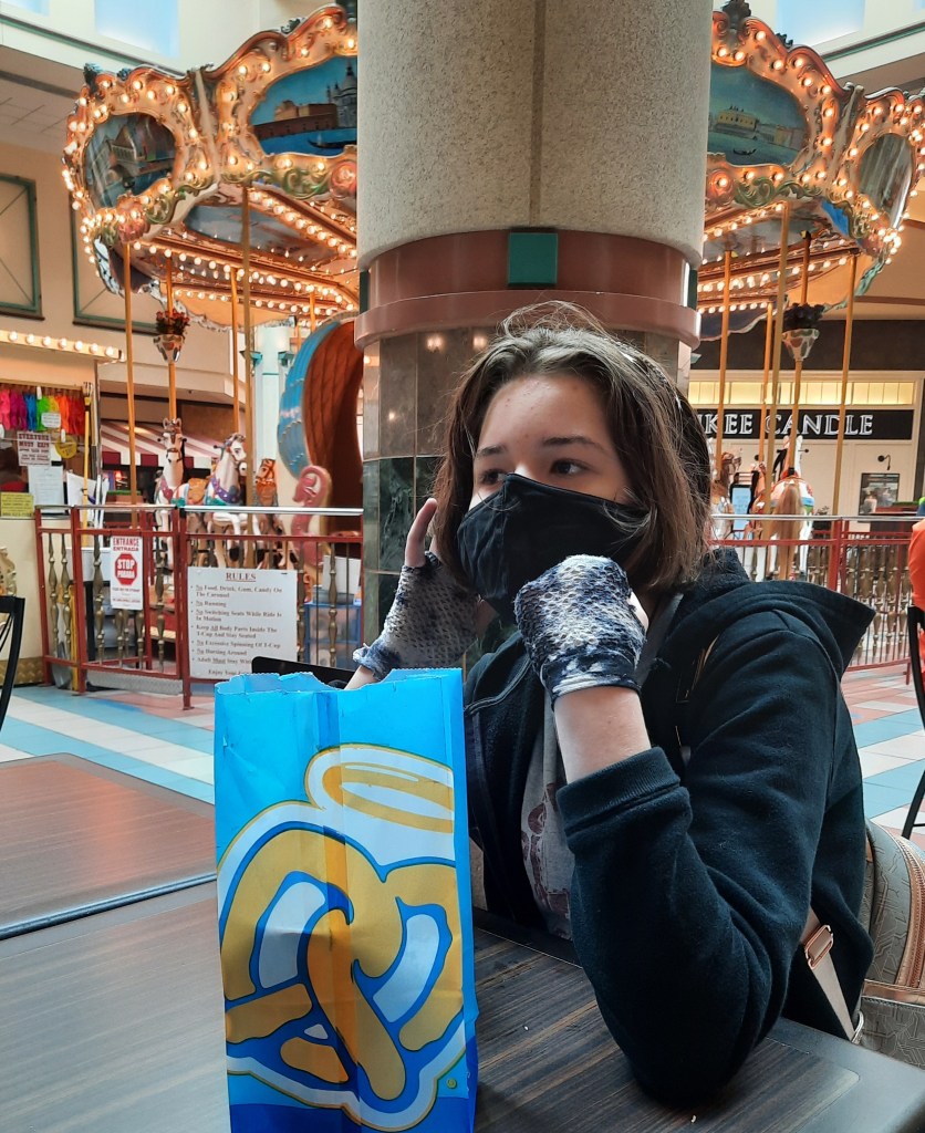 Happy 13th Birthday to my #2 grandie, Olivia Mayne Casey! She is a writer, author of a series of books she’s been working on for a couple of years now. She is a singer and a dancer, a scholar and a good friend. She is a Joy to be around and I love our Saturdays together. We went out to the mall yesterday and did some low-key celebrating; she picked out a pair of new shoes. She’s wasn’t keen on letting me take some pictures, but I did manage to snap this…