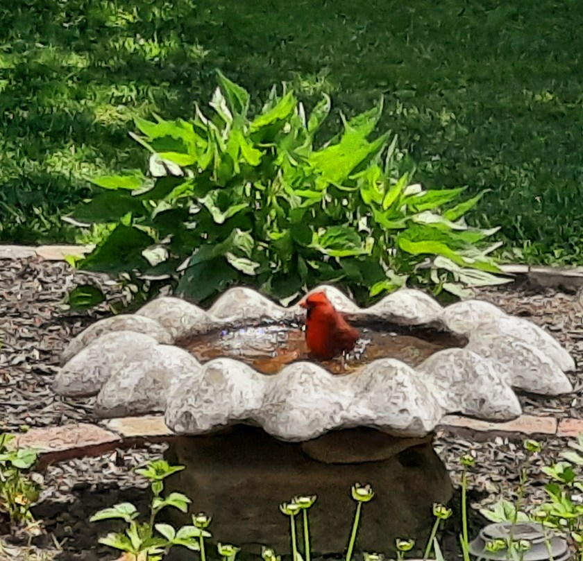 Last year our Bird/Peace Garden was only an embryo in my mind as I watched the birds from our meeting room window. I marvel as I watch the finches, woodpeckers, cardinals, bluebirds, titmice, feed at 3 finch feeders, 2 suet feeders, and 2 sunflower seed feeders. We just added a heater to our birdbath and throughout the day the space is abuzz with activity with the magnolia tree covered with birds perched like leaves waiting to feed or drink. They are not always nice to each other, but the locals are tolerant. The occasional starling or grackles tries to sneak in, but we run them off.