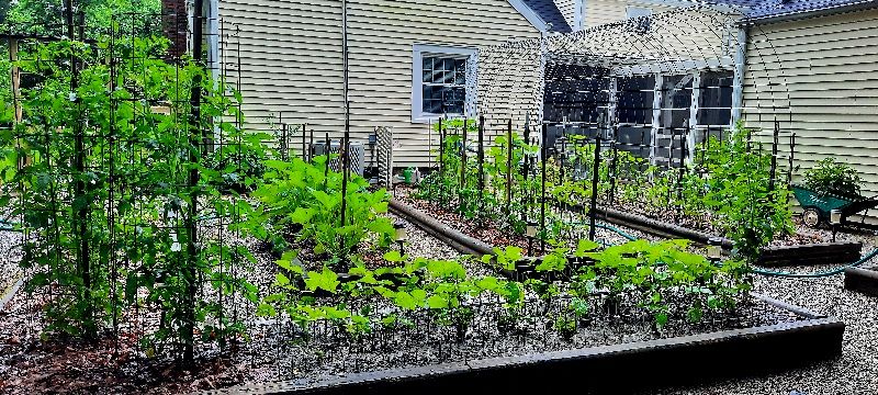 Our squash are still not producing fruit and their bloom time is over. I blame the excessive rains in their early days, because now our pollinators are buzzing around. I’m starting some seeds and hope to put some new plants out in a couple of weeks, as they are 55 days to harvest and that gives me until mid-September to get a good crop. Hopefully, the bees will see them this time.