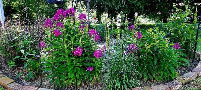 The dang deer ate all of those lush purple garden phlox blooms in the Peace/Bird Garden. There is a little fawn running around in the meadow that I’m partial to and I’ve been lulled into thinking they are just cute little pets. I missed my chance to save those this year, but I’m dragging out the hot sauce spray for the rest of the season.